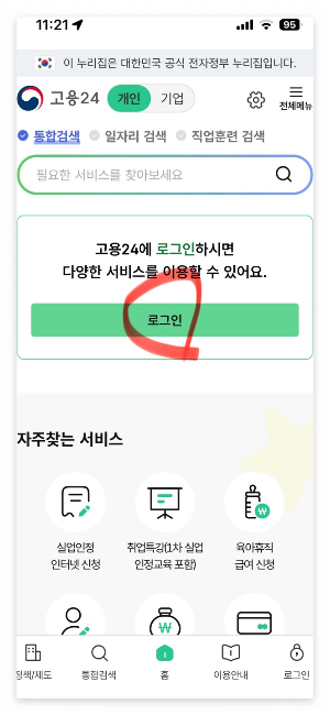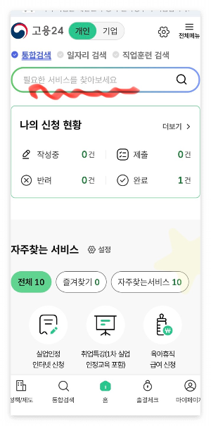 저는 이렇게 매월 1일이 되면 '고용24'앱에 들어가서 '육아단축근로 급여'를 신청하고 있어요!
