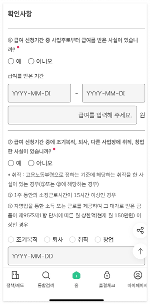 ⑥번 급여 신청기간 중 사업주로부터 급여를 받은 사실이 있습니까?